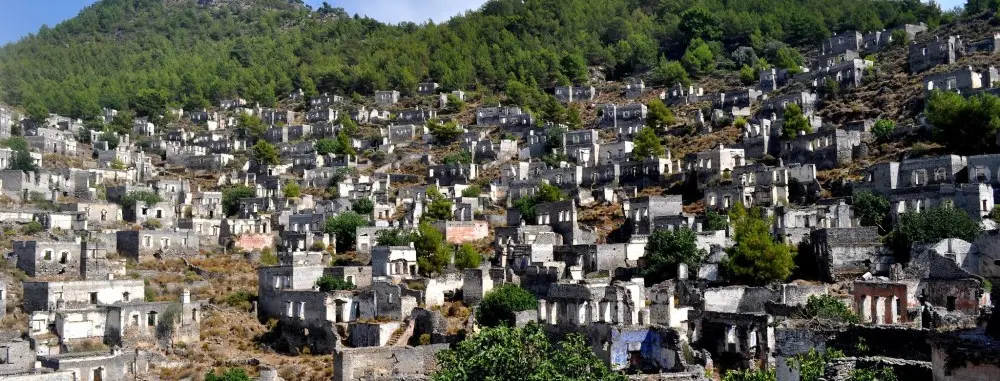 История Каякёй прервалась в 1923 году после греко-турецкой войны. Тогда греческое население принудительно вывезли с территории образованной Турецкой Республики. Все семьи покинули свои дома, а территория горного поселения оказалась заброшенной. Многочисленные постройки пострадали от времени, мародеров и разрушительного землетрясения в 1957 году.