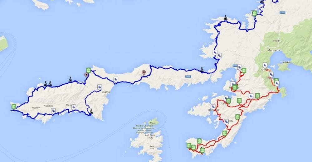Чаще всего туристы отправляются на участок маршрута на полуострове Датча. Он тянется вдоль скалистых бухт, из которых открываются виды на соседние греческие острова. В конце полуострова сохранились руины древнего города Книдос, а на вершине соседнего мыса до сих пор работает маяк, который помогает ориентироваться многочисленным кораблям.