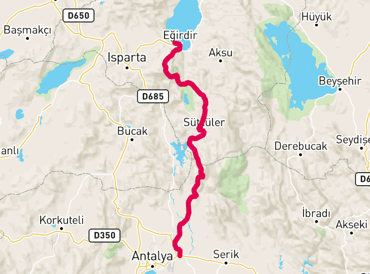 Тропа Святого Павла длиной около 500 километров проходит по маршруту первых миссионерских путешествий апостола. Она начинается в Перге неподалеку от Антальи и заканчивается в Ялваче возле живописного горного озера Эгирдир. Другой отрезок проходит параллельно основному, начинаясь от римского моста через реку Кепрюлю.
