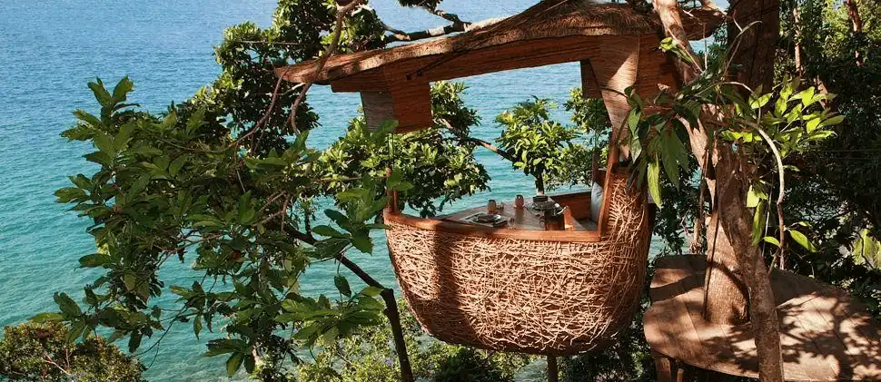 Еще один тайский эксперимент, на этот раз – на верхушке дерева. Гостям предлагают расположиться внутри стилизованной кабинки-гнезда, будто бы свитой гигантской птицей из древних мифов. Каждая уютная «комнатка» без окон и стен находится на высоте 5 метров и вмещает всего несколько персон – это делает поход в Bird’s Nest особенным, ведь вокруг – только зеленая листва, разноцветные птицы и океан на горизонте. В меню – список блюд, приготовленных из фруктов и овощей из собственного сада (Garden Delights), морской сет Tantalizing Turf, «Симфония океана», а также другие тематические разделы меню и сеты, включая десерты под чайное сопровождение и коктейли на базе локальных ингредиентов. Проект находится на территории Soneva Kiri Eco Resort.