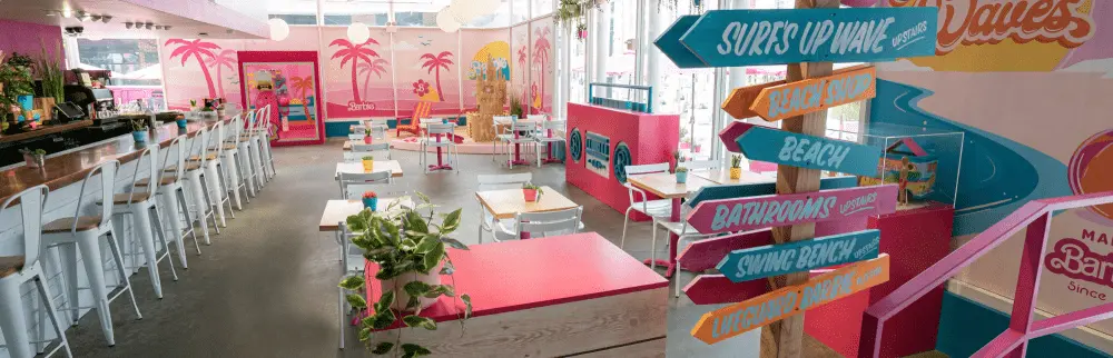 Если Барби-реальность для вас – любовь, зародившаяся задолго до премьеры с Марго Робби, срочно бронируйте билет до Нью-Йорка. Malibu Barbie открылось меньше года назад. Интерьер, форма официантов и каждая деталь напоминают о Малибу 70-х – именно в этот период на прилавках появилась первая кукла-легенда.