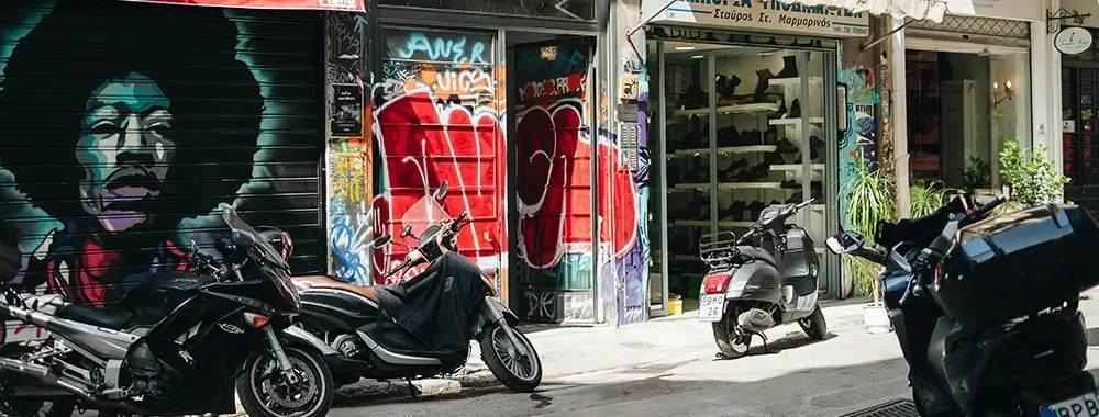 Неподалеку располагается другой популярный район Афин — Монастираки, оживленное место с самым известным блошиным рынком в городе. Центром ночной жизни города считается Псири — район, где много баров, таверн и клубов. Арт-центром Афин стал бывший промышленный район Гази, который преобразовали в большое культурное пространство.