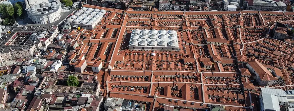 Сразу стоит сказать, что древний рынок все еще работает. Из-за этого он выглядит не так аутентично, как другие достопримечательности Стамбула на карте. Стены покрыты вывесками и рекламой, а штукатурка с рисунками на потолке уже облезла.