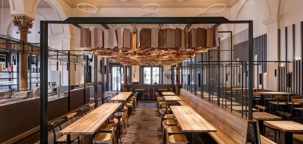 Masaryčka находится прямо посреди старейшего железнодорожного вокзала Праги. Когда-то тут принимал гостей императорский ресторан Císařská. Сейчас в стильном минималистично-индустриальном интерьере из дерева, металла и латуни готовят традиционную чешскую кухню и европейские хиты. До конца года можно застать особые специалитеты вроде супа из лосося с просекко или грибной кубы по-чешски.