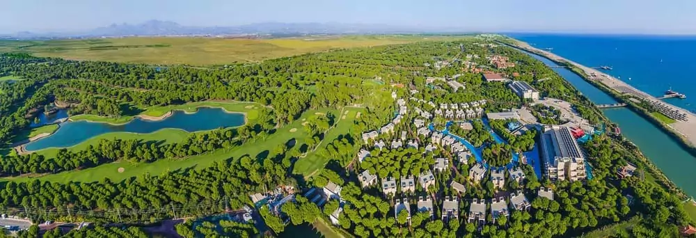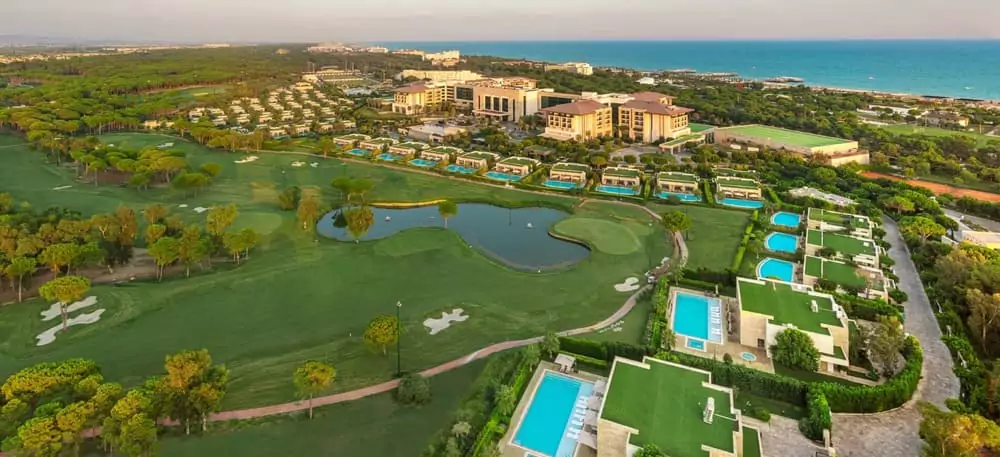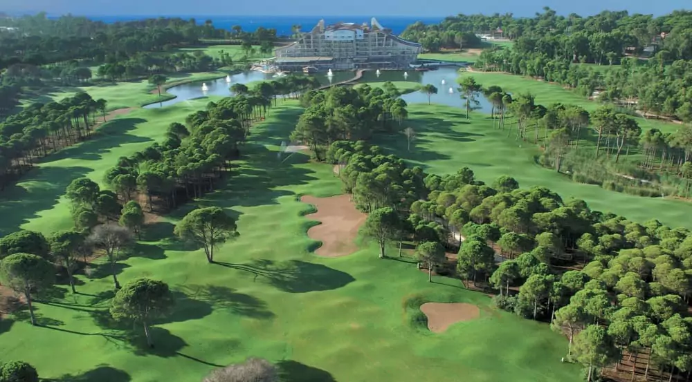 Два 18-луночных поля при роскошном отеле – тренировочная база главного гольф-клуба Анталии, подразделения международной спортивной федерации PGA Tour. Но здесь рады не только профессиональным спортсменам. Маршруты, спроектированные известным дизайнером и гольфистом Дэвидом Джонсом, позволят насладиться игрой как новичку, так и победителю турниров. Бродить по зеленым лужайкам, окруженным озерами и лесом, понравится даже тем, кто не очень любит гольф.
