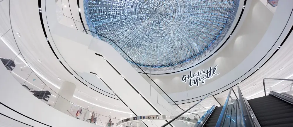 При посещении обратите особое внимание на купол, он является архитектурной изюминкой строения и повторяет мотивы первой Галереи Лафайет на бульваре Осман в Париже. Купол полностью выполнен из объемных стальных призм, созданных под давлением в 80 тонн с помощью лазерной резки.