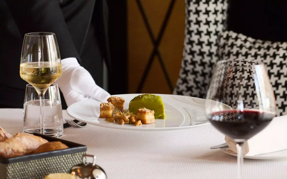 Шеф-повар Янник Аллено обещает гостям блюда, приготовленные по современным технологиям так, что вкусы постепенно нарастают и буквально взрываются во рту. Меню меняется в зависимости от сезона. Например, зимний сет начинается с мороженого из артишоков под икрой из чернослива, ореховым маслом и желе из сосновых шишек. Продолжит гастрономическое путешествие королевский краб с бульоном из водорослей нори, сибас под вуалью из кальмаров, сельдерея и щавелевого соуса. На десерт: апельсиновый жемчуг с финиками из корицы или ячменное мороженое с грибной пеной и кленовым сиропом. Особенно посетители рекомендуют попробовать пирог из лангустинов из основного меню. Винной картой заведует сомелье, отмеченная звездой Мишлен. Даниэла Тешич привнесла в меню традиции родной Сербии и подбирает идеальный сорт винограда под каждое блюдо.