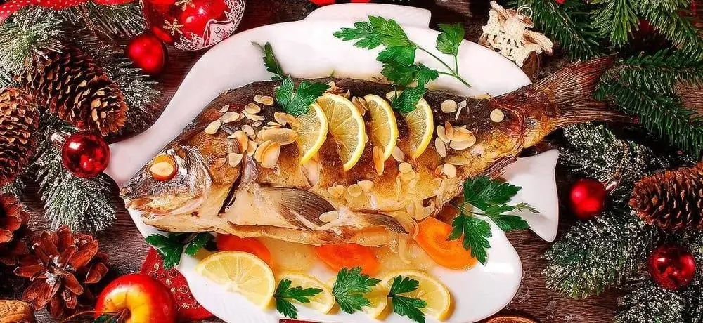 - Основное блюдо — жареный карп (Karpfenfische) или сазан (Karpfen), либо запеченный гусь с красной капустой (Martinigansl mit Rotkraut). В Бургенланде популярно блюдо под названием тафельшпиц с яблочным хреном (Tafelspitz mit Apfelkren), основу которого составляет отварная говядина;