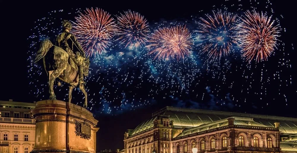 Своей кульминации праздничное оживление достигает на площади Штефансплатц, когда ровно в полночь Пуммерин, почтенный колокол в Соборе святого Штефана, извещает о приходе Нового года. Затем начинаются народные гуляния, которые длятся всю ночь до утра. Одним из самых впечатляющих и запоминающихся зрелищ станет грандиозный фейерверк, посмотреть который можно из парка отдыха Пратер. В Австрии верят, что любой злой дух старого года исчезает, когда вверх взмывают праздничные салюты. В полночь с церковных башен звучат звуки труб, которые по традиции возвещают о наступлении Нового года в Австрии, а наступление полуночи отмечают поцелуями.
