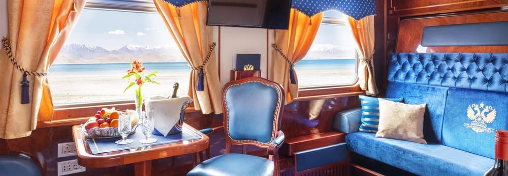 Вместо привычных купе здесь — просторные номера с панорамными окнами, в вагоне-ресторане подают блюда высокой кухни, а стоит все это удовольствие от €7 000 за тур.