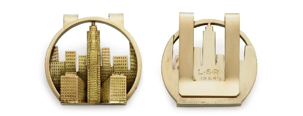 В сегменте «люкс» находятся те зажимы, чья цена составляет около $6000. Как правило, это золотые аксессуары, инкрустированные бриллиантами. Самый же дорогой зажим в мире стоит $75 000 — именно за такую цену он был продан на торгах аукционного дома Christie’s. Выполненный из 14-каратного золота зажим 4 на 4 см представляет собой модель Рокфеллер-центра. Самым ценным в проданном лоте считают выгравированные на оборотной стороне инициалы Лоранса Рокфеллера «LSR 1954». Можно с уверенностью сказать, что решившийся на такую покупку явно имеет куда больше денег, чем этот зажим способен удержать.