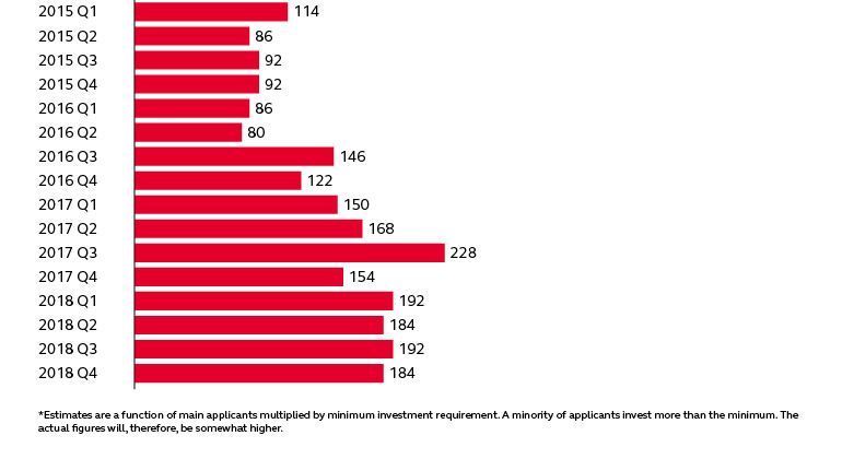 Как отмечают аналитики, наибольшее количество заявок пришлось на 5 и 6 декабря 2018 года, когда в прессу проникла информация о возможной приостановке программы получения инвесторской визы Tier 1. Предполагалось, что выдача этой визы будет временно отменена до запланированной на весну 2019 года иммиграционной реформы, направленной на борьбу с неблагонадежными инвесторами.